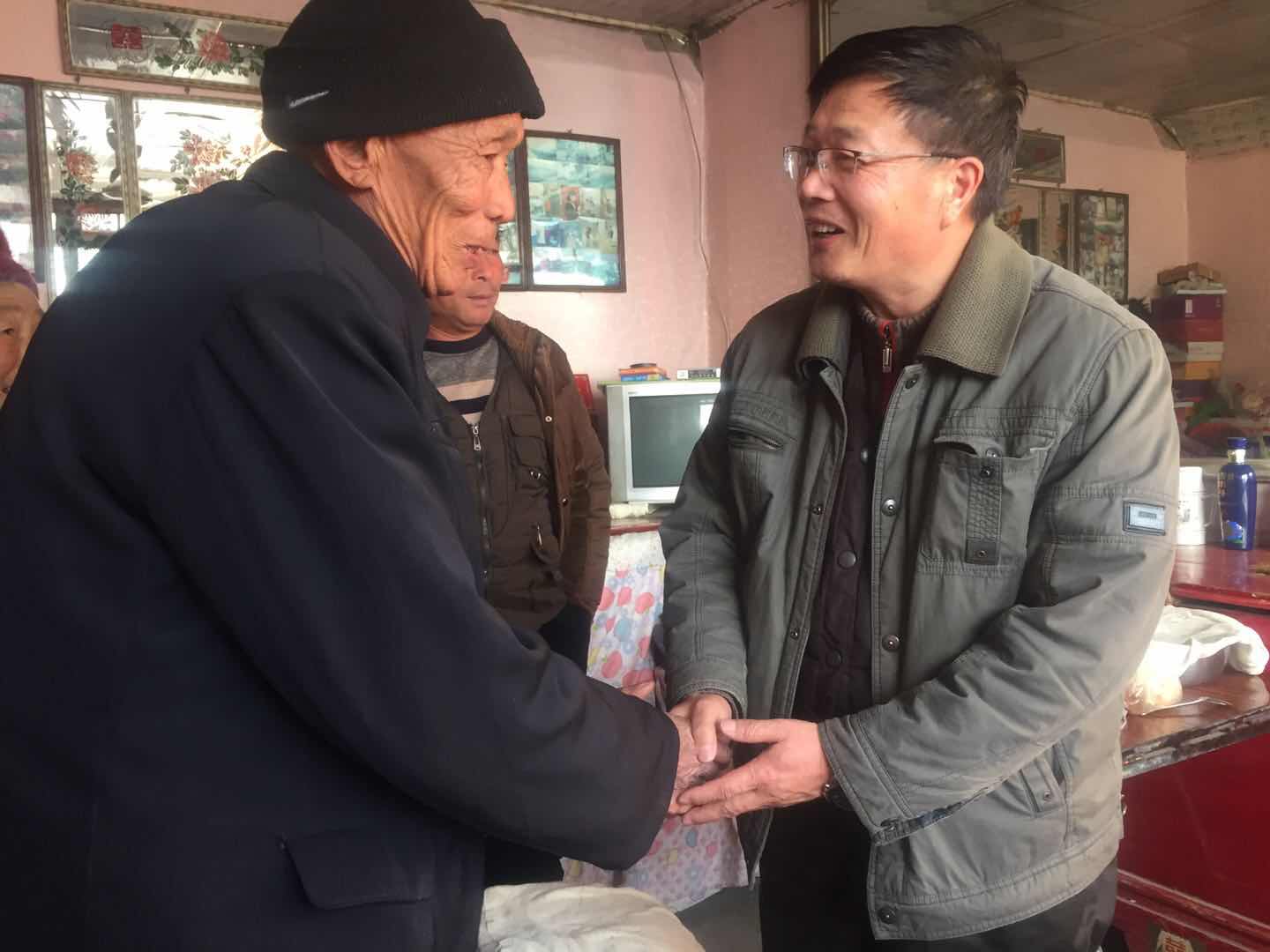 李主任与老同志握手道别